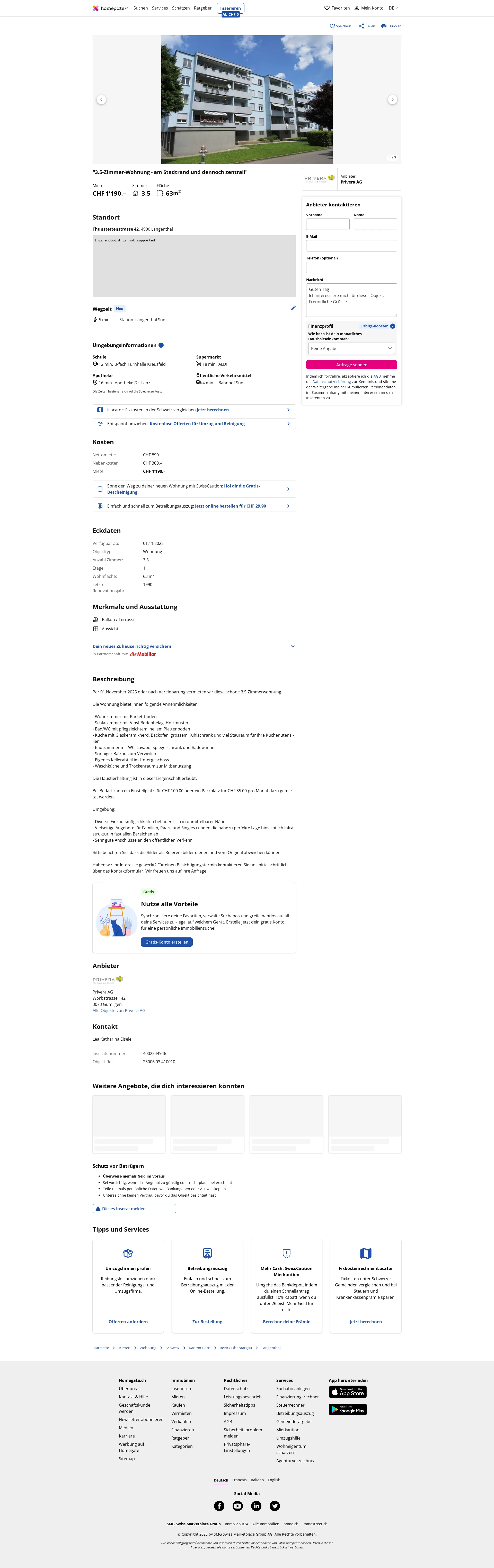 | Miete | CHF 1.190 /Mo |