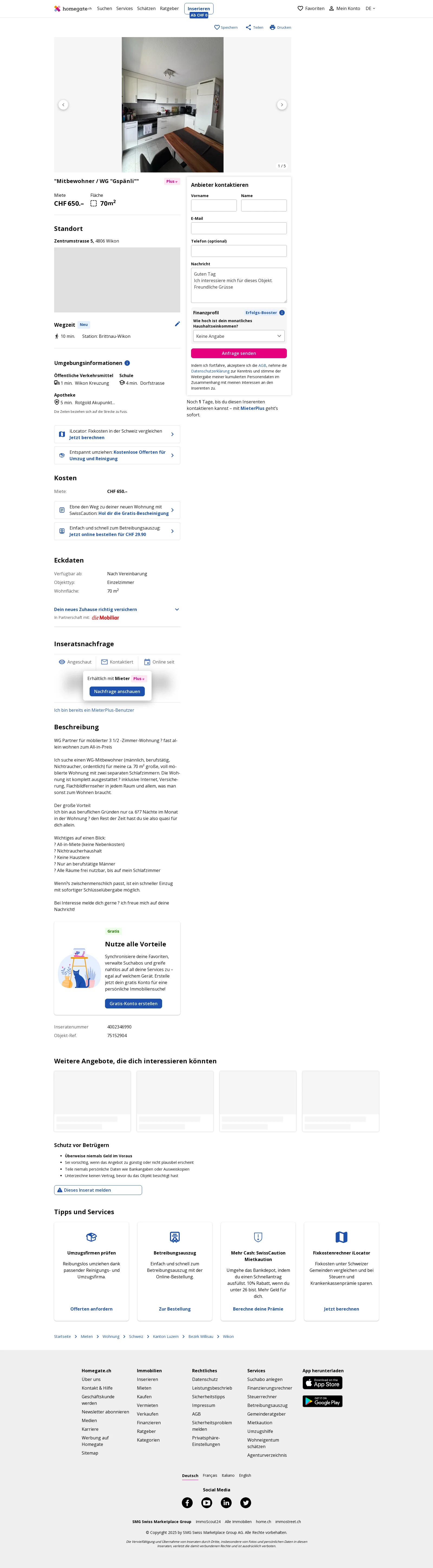 | Miete | CHF 650 /Mo |