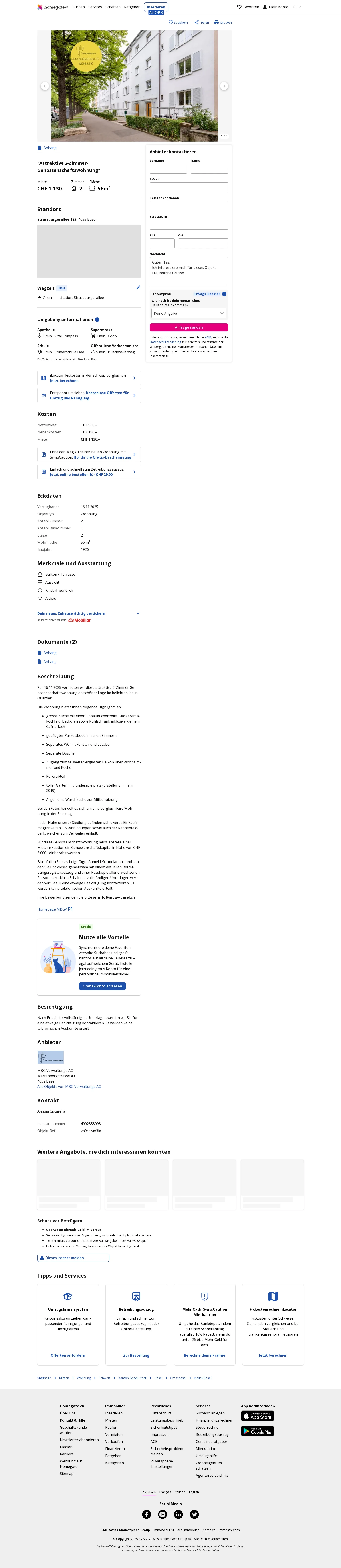 | Miete | CHF 1.130 /Mo |