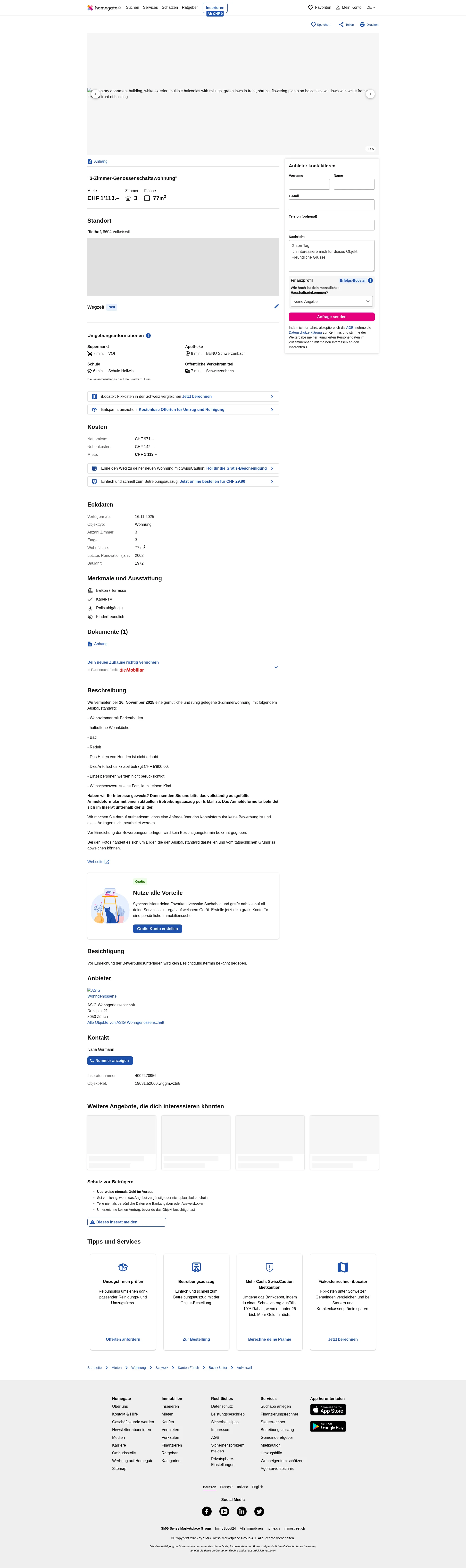 | Miete | CHF 1.113 /Mo |