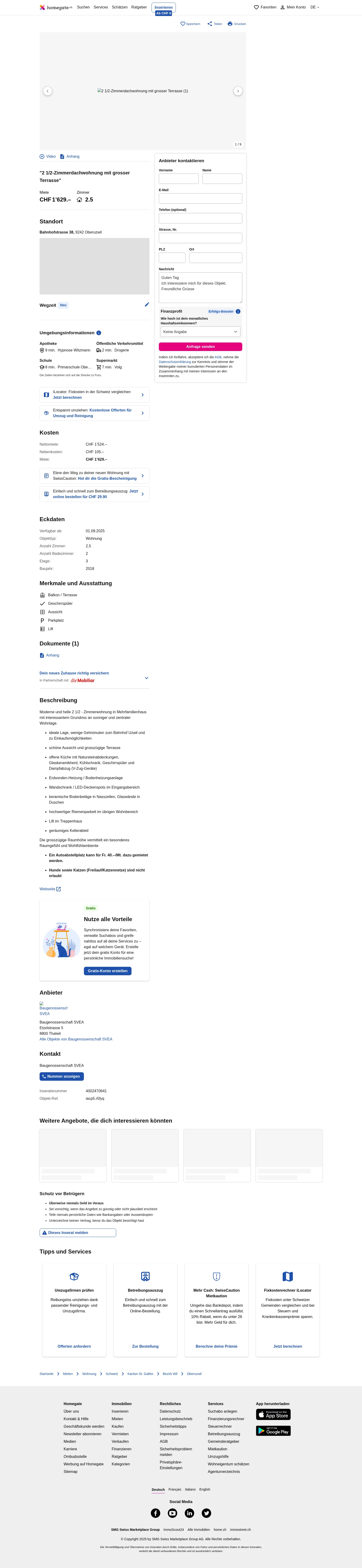 | Miete | CHF 1.629 /Mo |