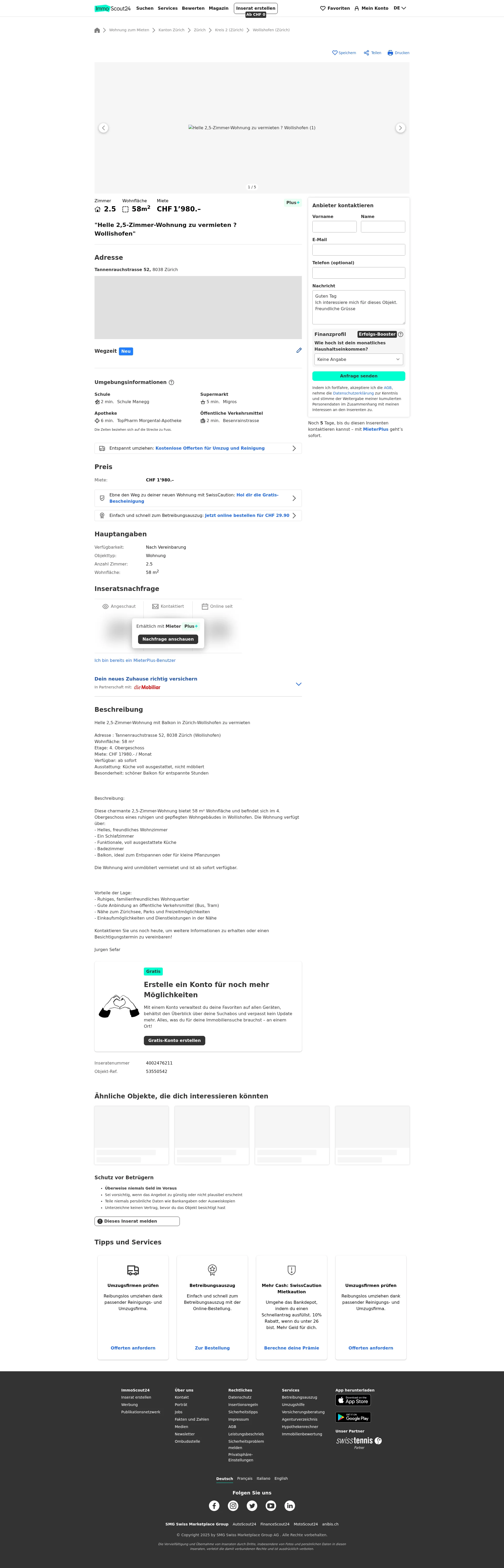 | Adresse | Tannenrauchstrasse 52, 8038 Zürich ZH |