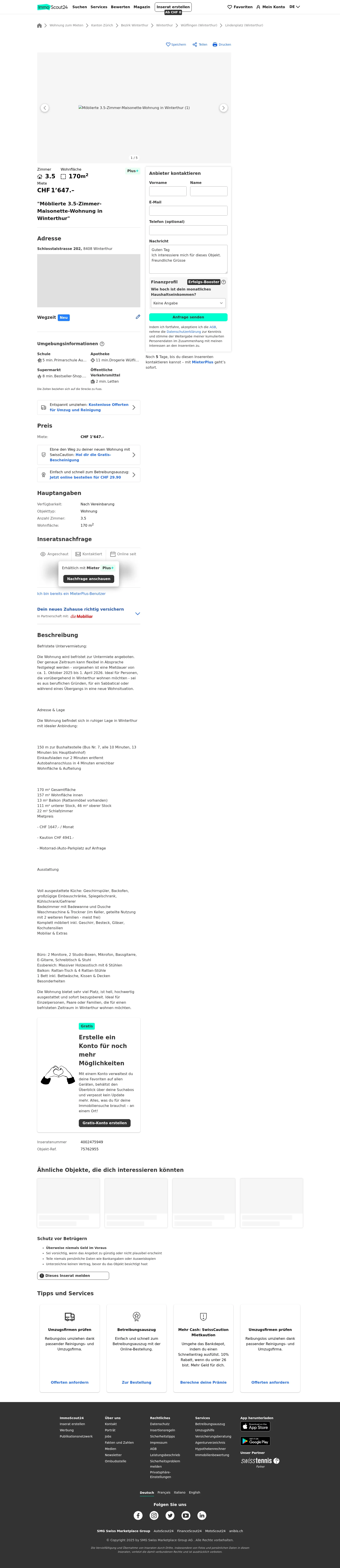 Miete CHF 1.647 /Mo