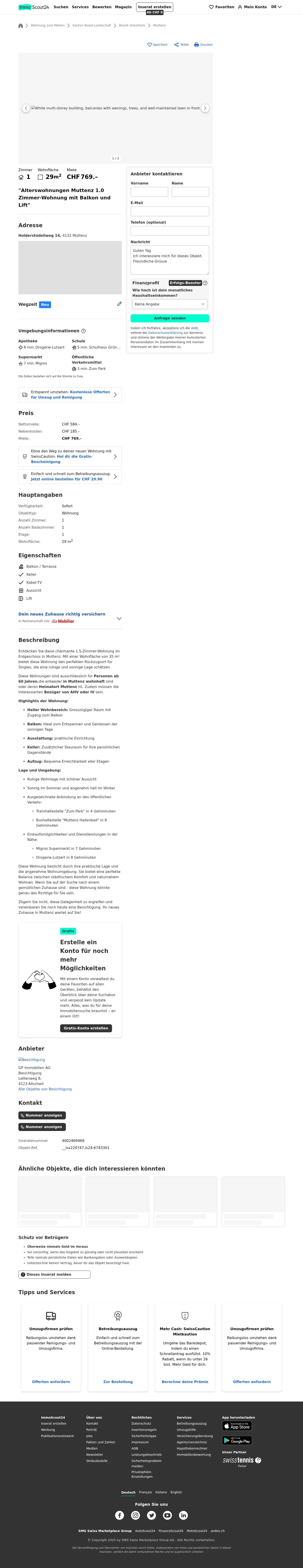 | Miete | CHF 769 /Mo |