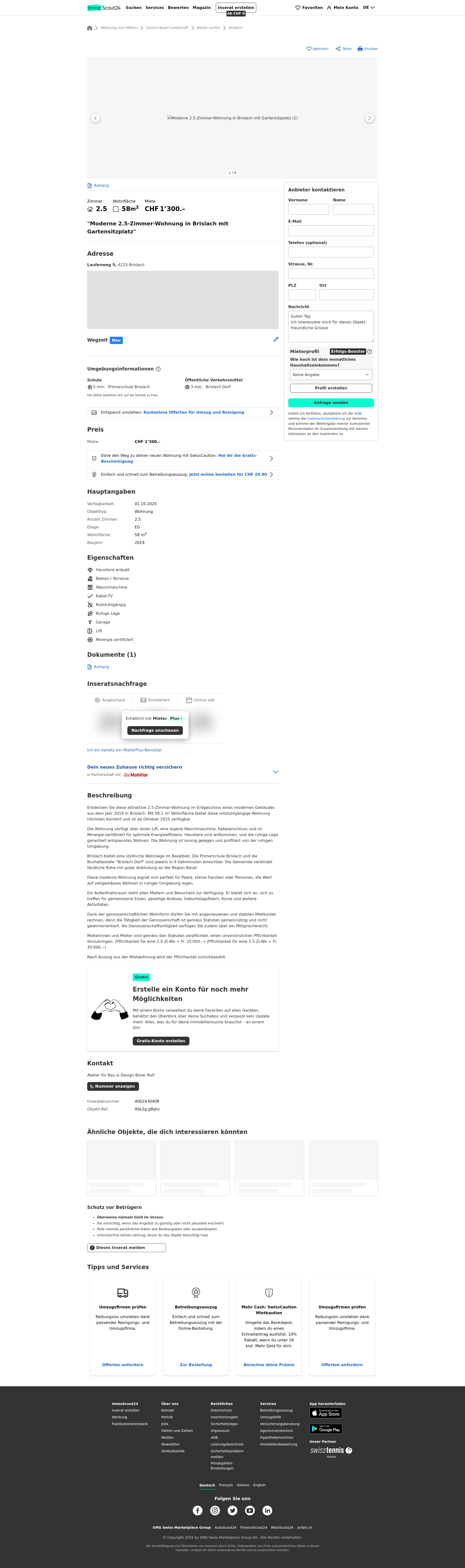 | Miete | CHF 1.300 /Mo |