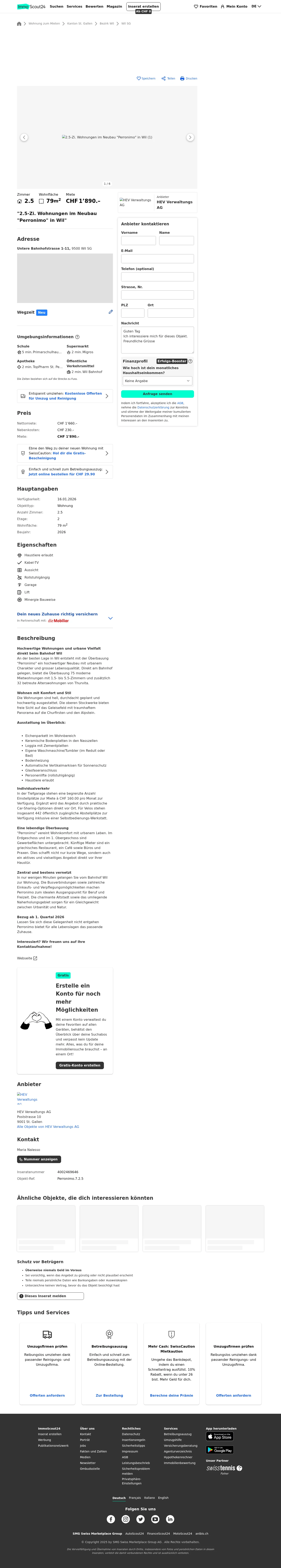 Hochwertige Wohnungen und urbane Vielfalt direkt beim Bahnhof WilAn der besten Lage in Wil entsteht mit der Überbauung "Perronimo" ein hochwertiger Neubau mit urbanem Charakter und grosser Lebensqualität. Direkt am Bahnhof gelegen, bietet die Überbauung 75 moderne Mietwohnungen mit 1.5- bis 5.5-Zimmern und zusätzlich 32 betreute Alterswohnungen von Thurvita.