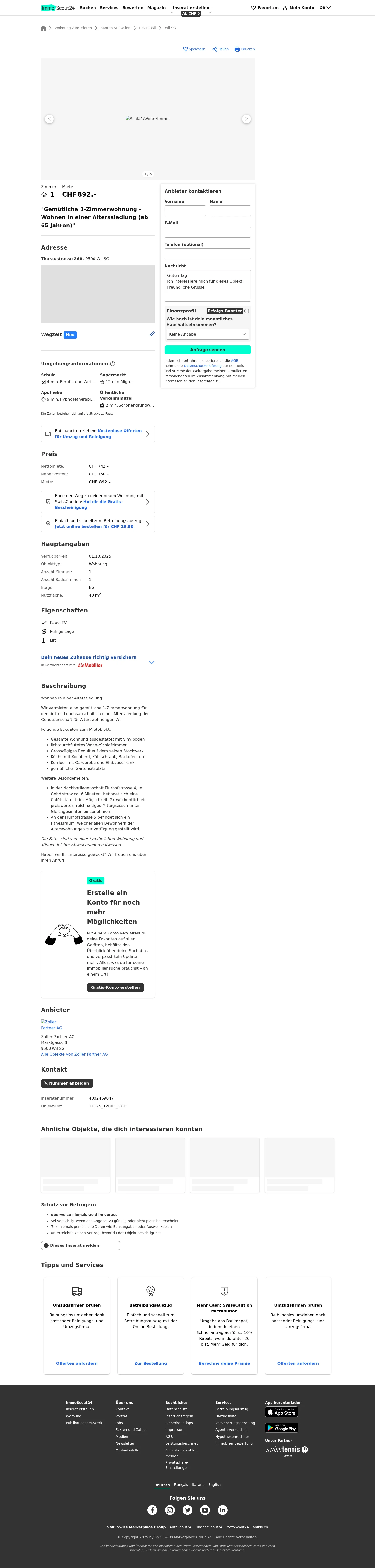 | Miete | CHF 892 /Mo |