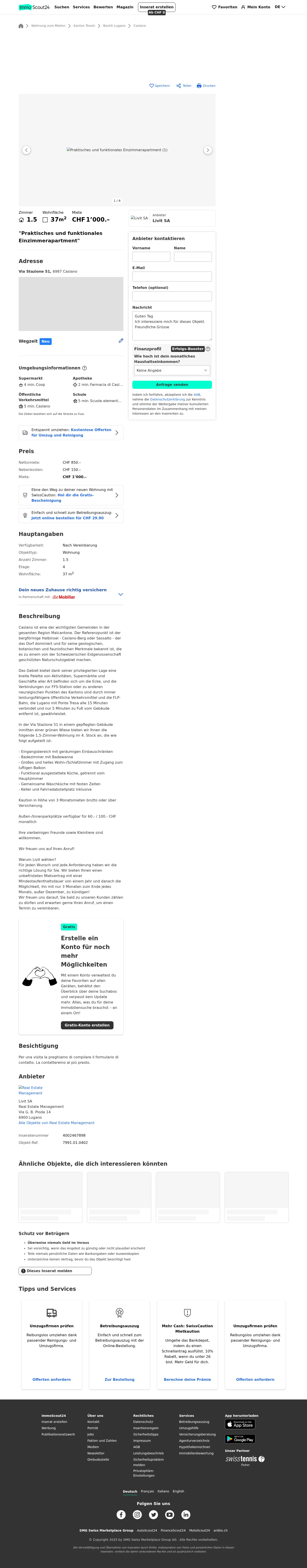 | Miete | CHF 1.000 /Mo |