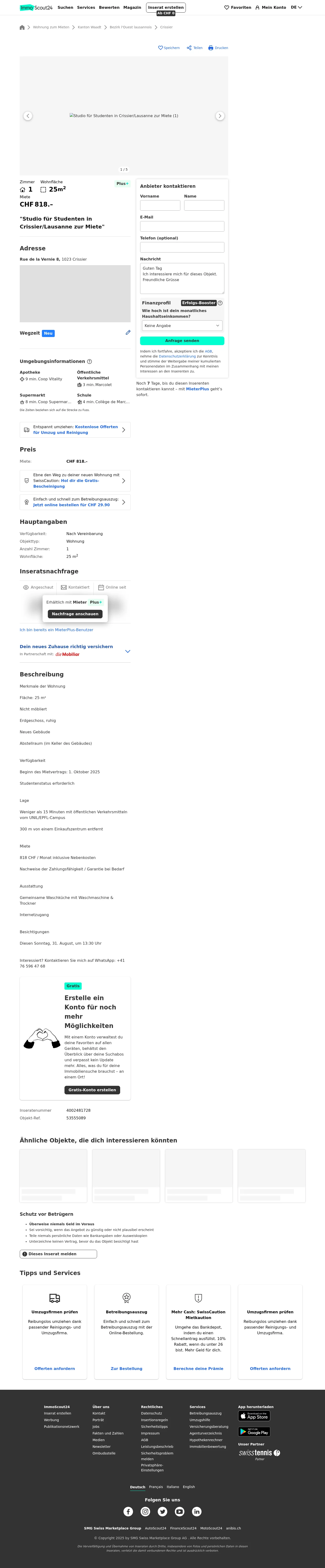 | Miete | CHF 818 /Mo |