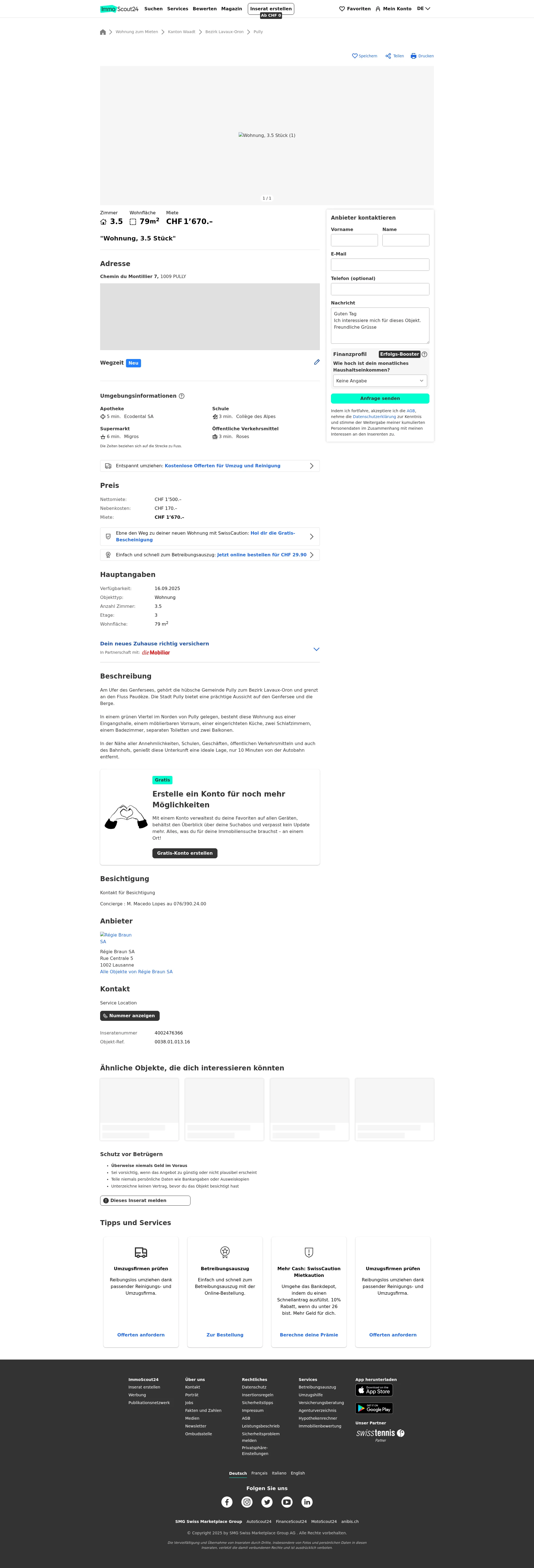 | Miete | CHF 1.670 /Mo |