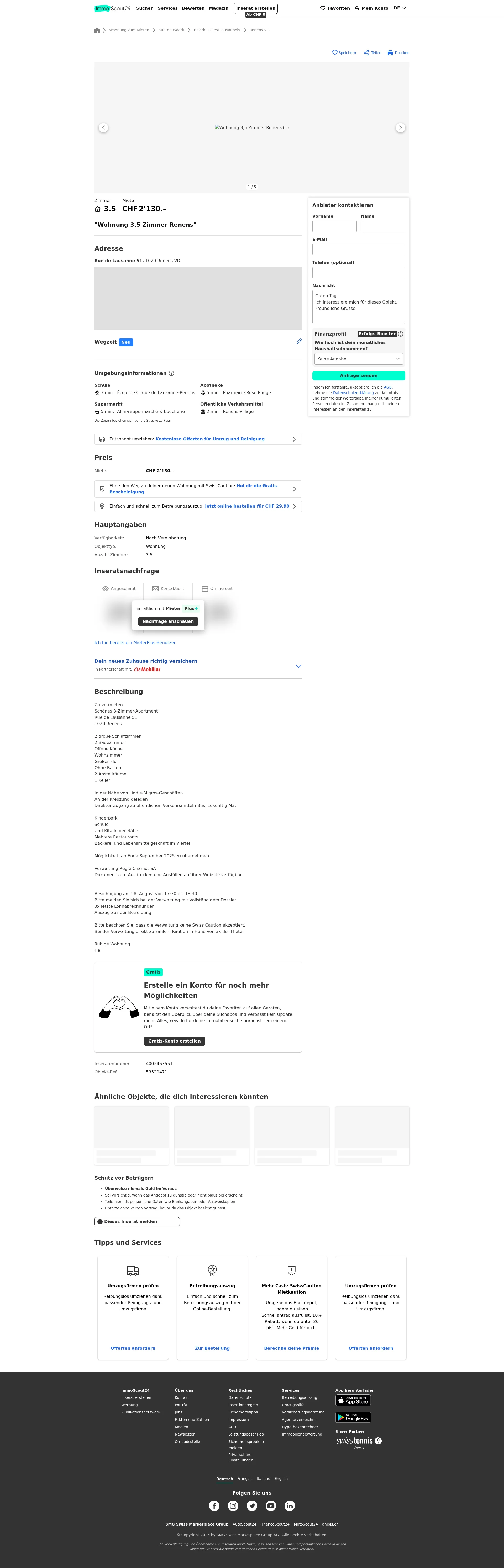 | Miete | CHF 2.130 /Mo |
