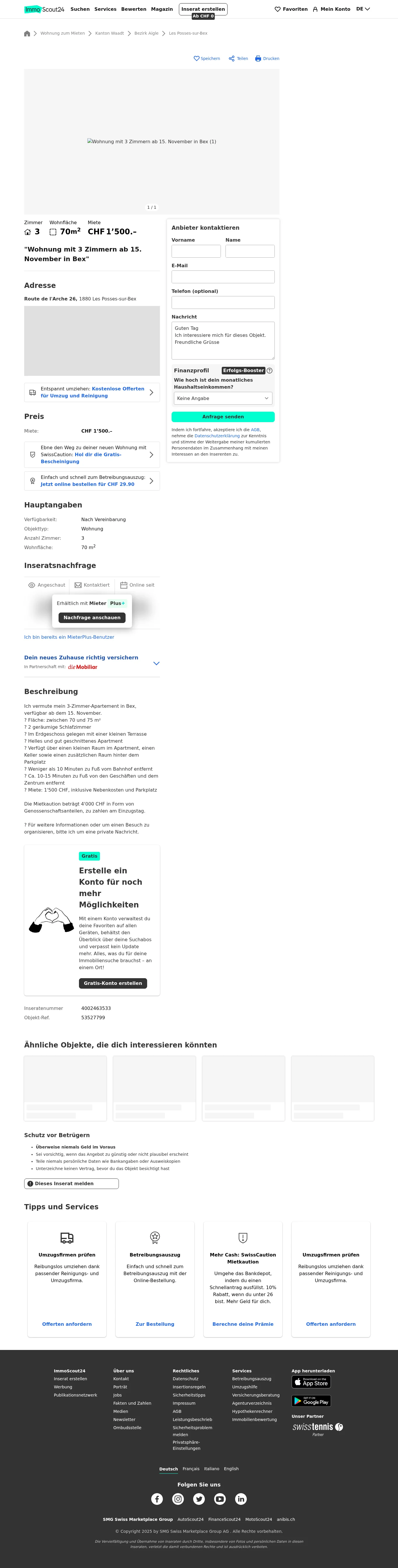| Miete | CHF 1.500 /Mo |