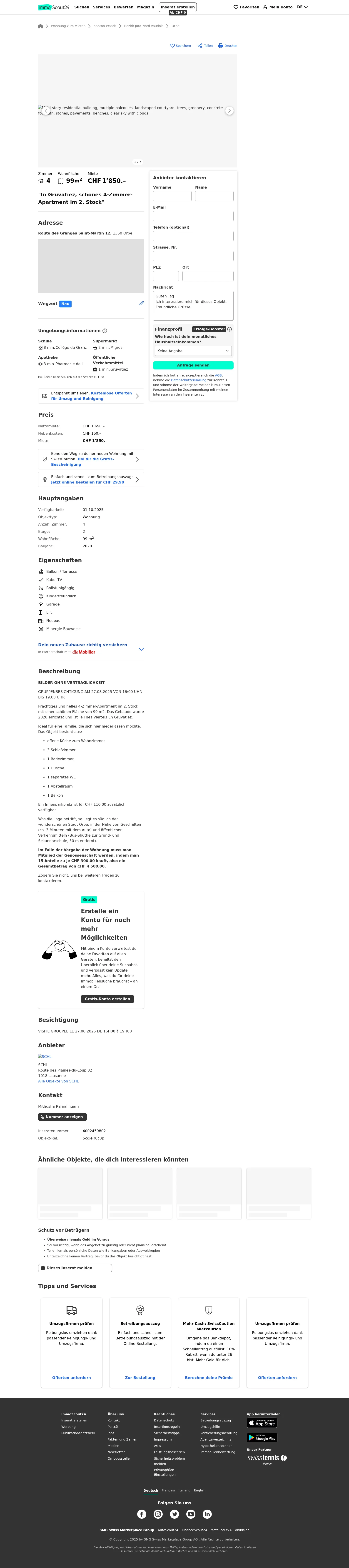 | Miete | CHF 1.850 /Mo |