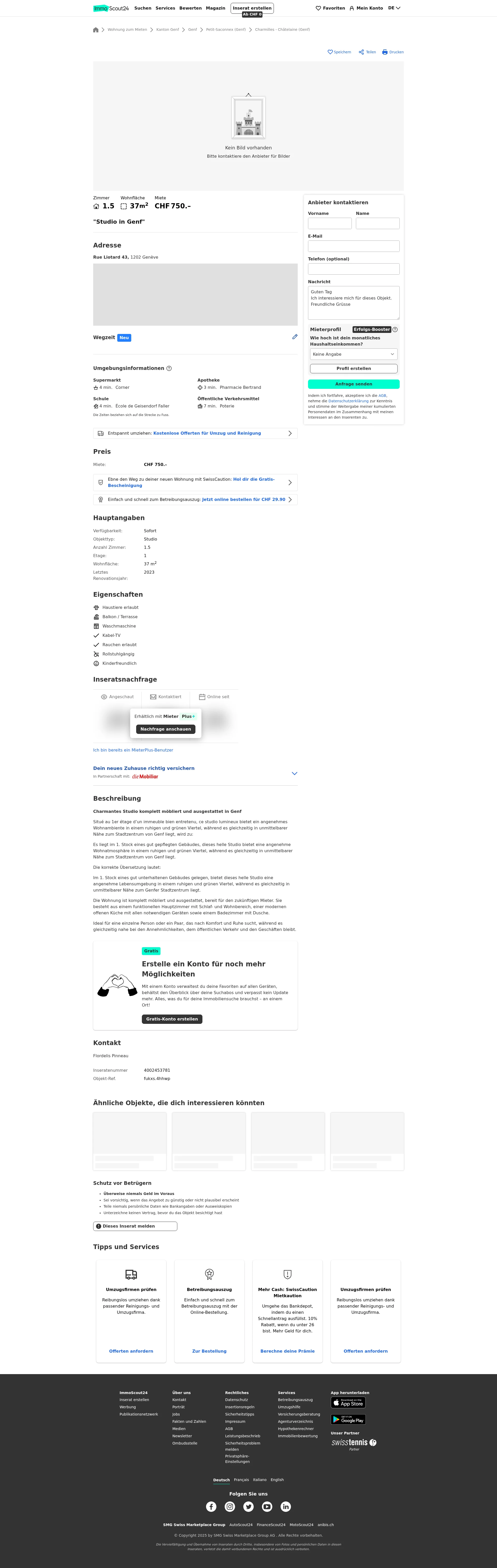 Es liegt im 1. Stock eines gut gepflegten Gebäudes, dieses helle Studio bietet eine angenehme Wohnatmosphäre in einem ruhigen und grünen Viertel, während es gleichzeitig in unmittelbarer Nähe zum Stadtzentrum von Genf liegt.
