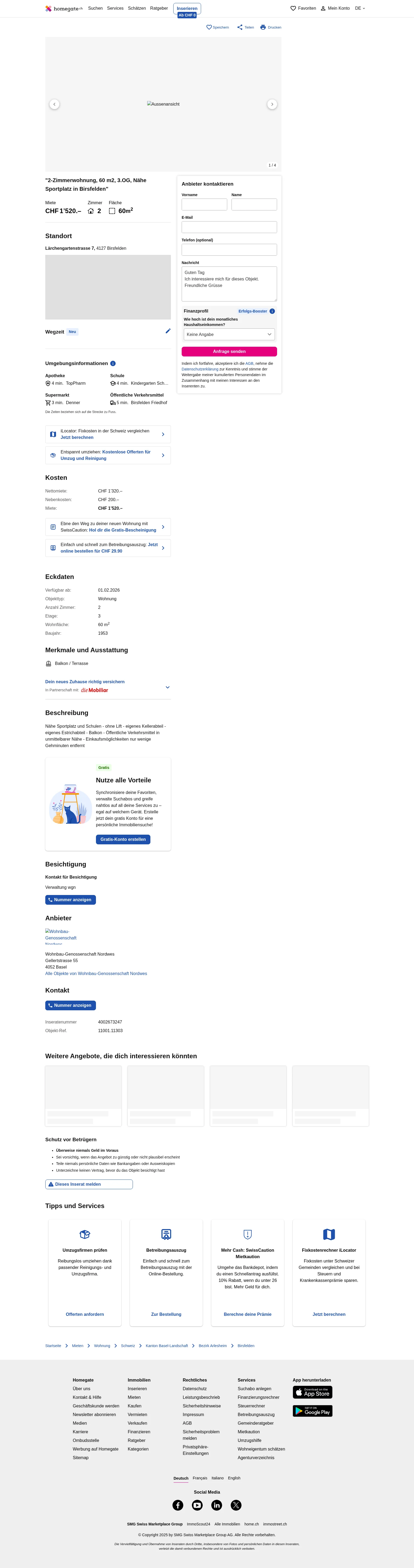 | Miete | CHF 1.520 /Mo |