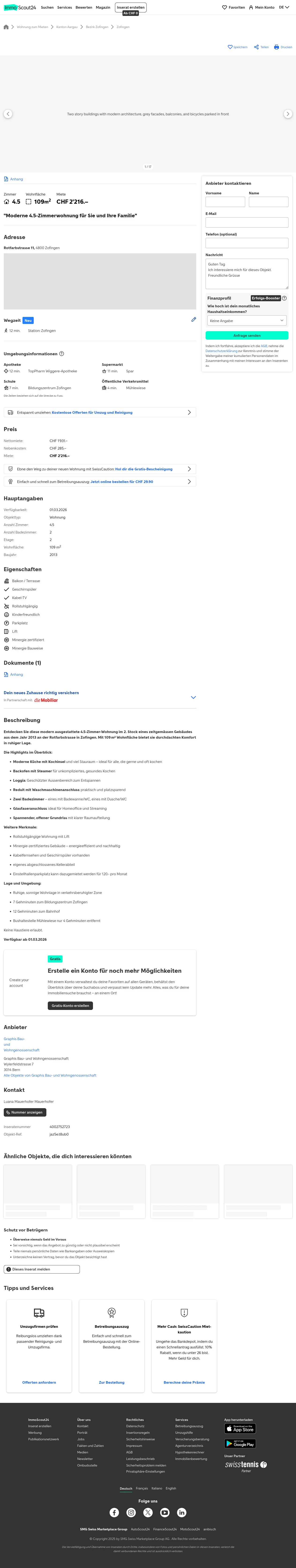 | Miete | CHF 2.216 /Mo |