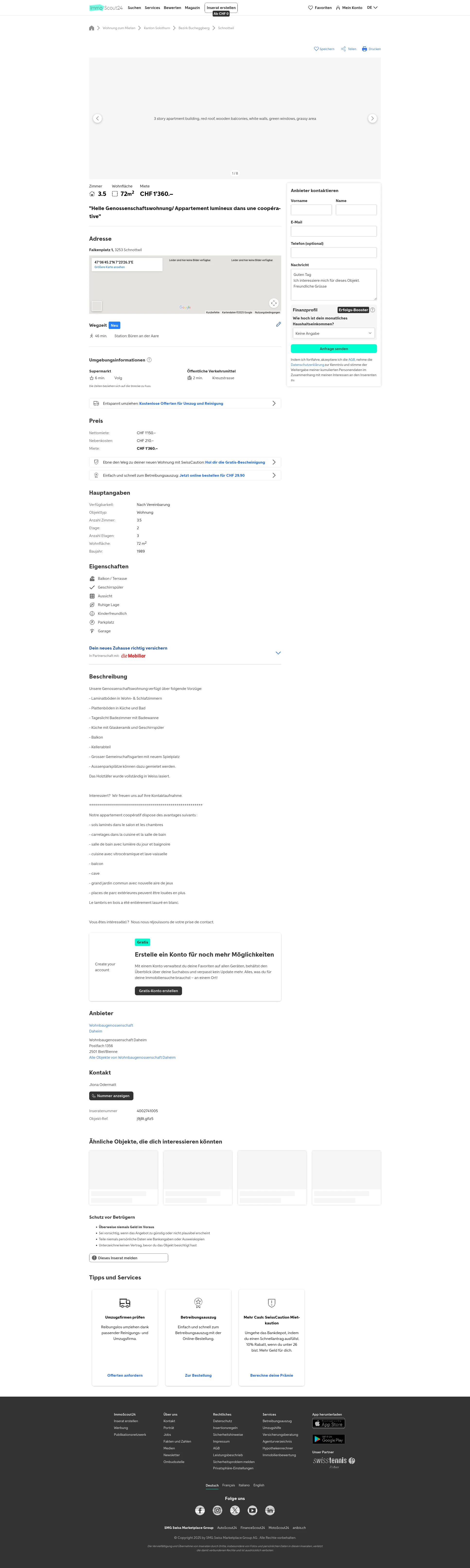 | Miete | CHF 1.360 /Mo |