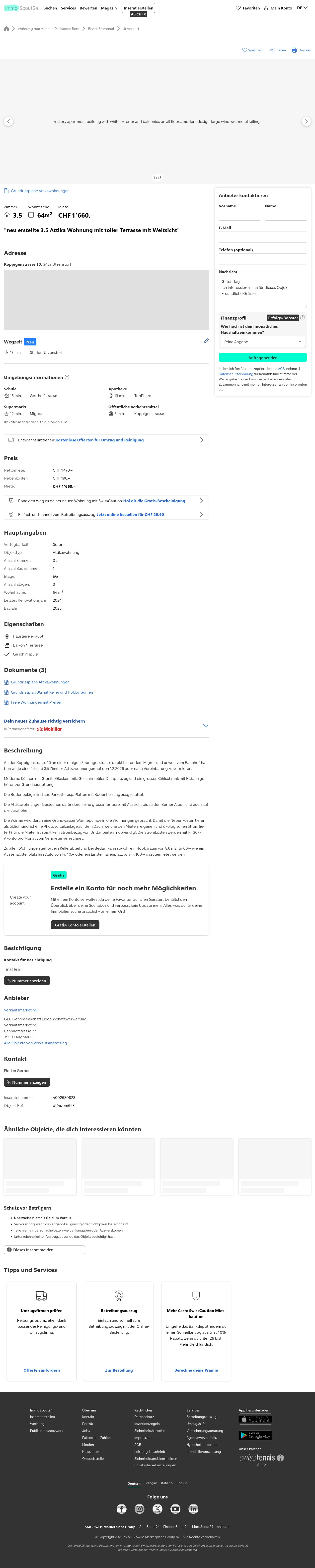 An der Koppigenstrasse 10 an einer ruhigen Zubringerstrasse direkt hinter dem Migros und unweit vom Bahnhof, haben wir je eine 2.5 und 3.5 Zimmer-Attikawohnungen auf den 1.2.2026 oder nach Vereinbarung zu vermieten.