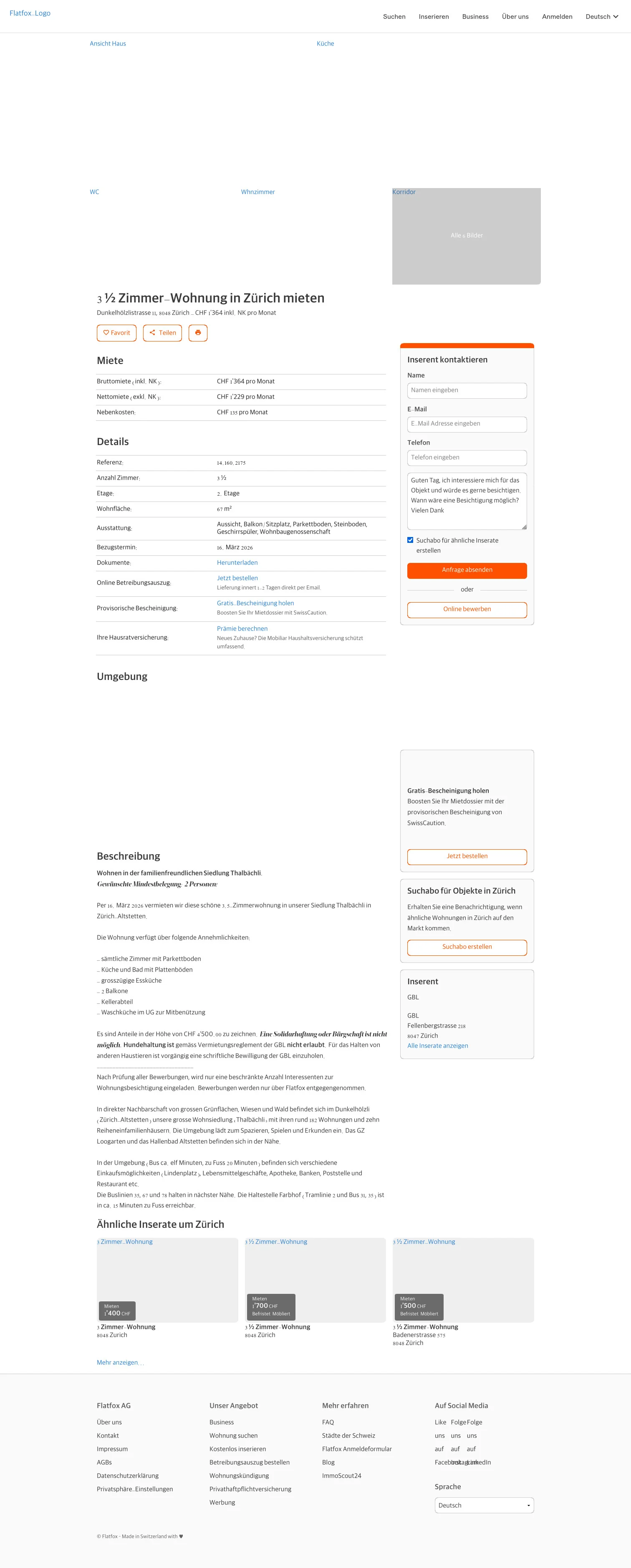 | Miete | CHF 1.364 /Mo |