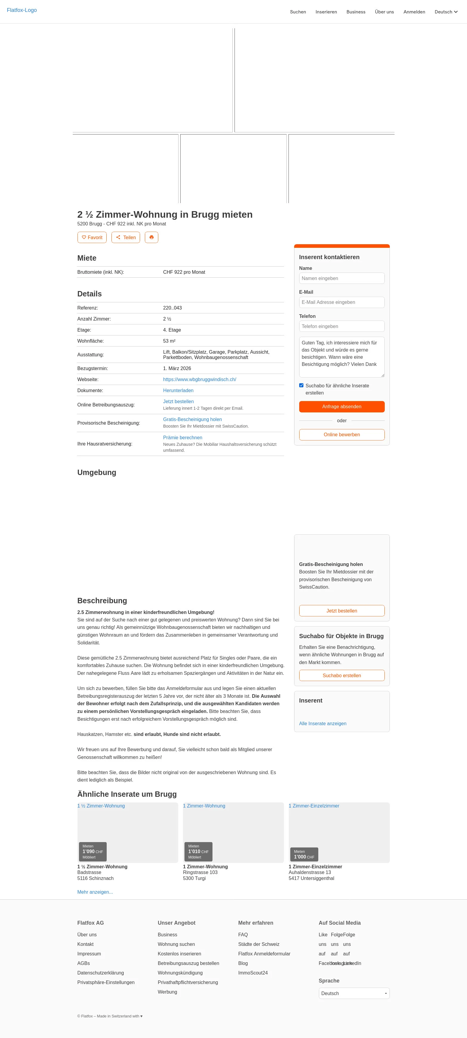 | Miete | CHF 922 /Mo |