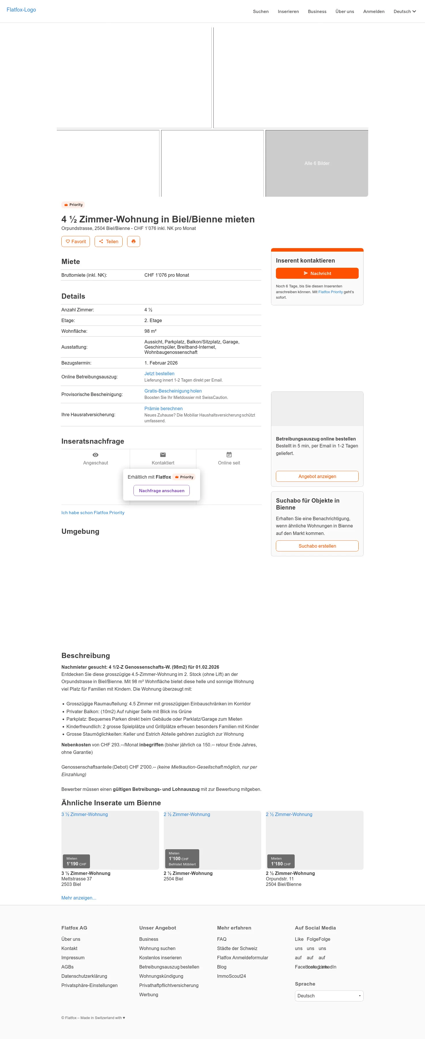 Entdecken Sie diese grosszügige 4.5-Zimmer-Wohnung im 2. Stock (ohne Lift) an der Orpundstrasse in Biel/Bienne. Mit 98 m² Wohnfläche bietet diese helle und sonnige Wohnung viel Platz für Familien mit Kindern. Die Wohnung überzeugt mit:
