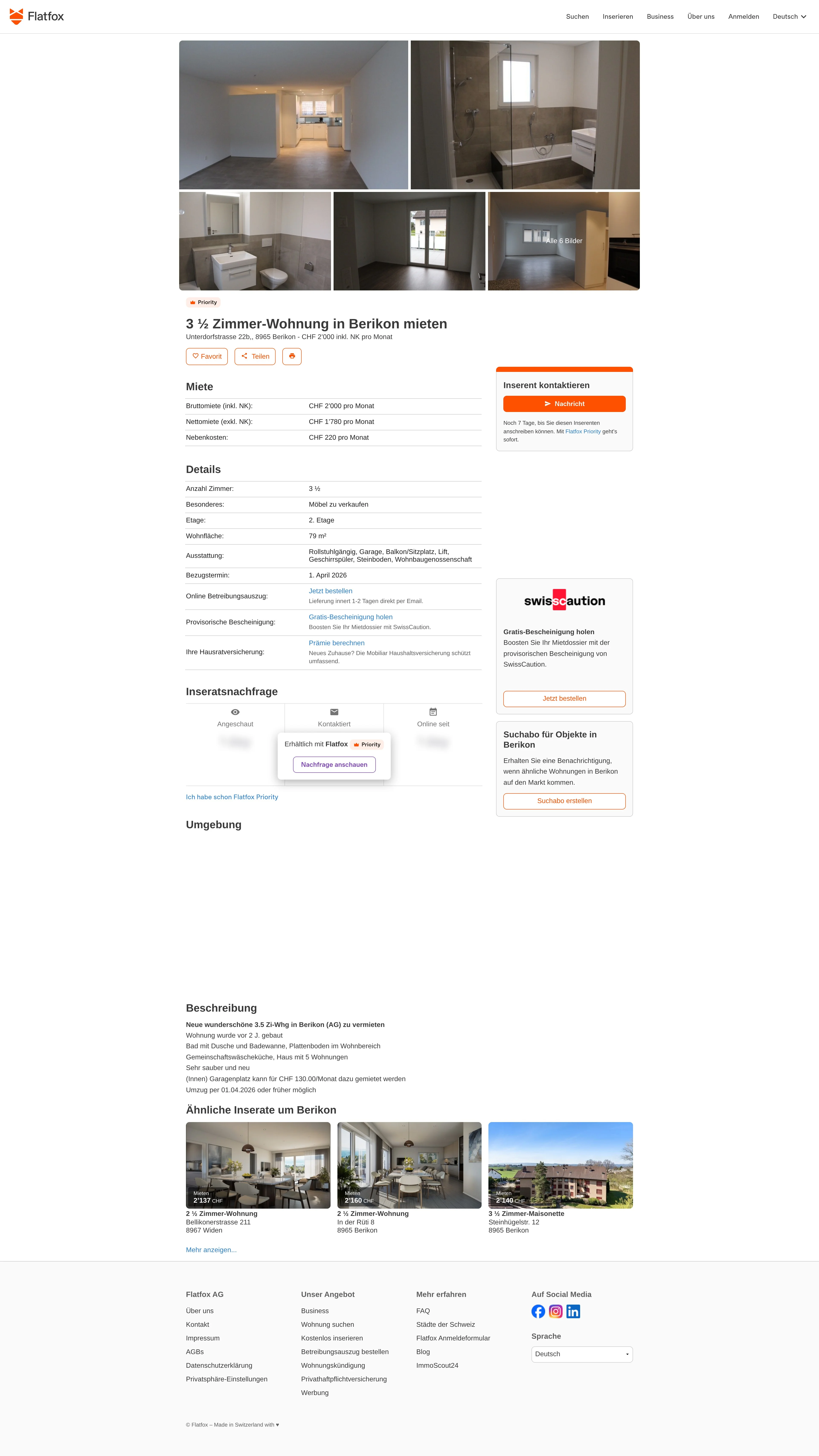 Diese 3.5-Zimmer-Wohnung in Berikon (8965) bietet 79 m² Wohnfläche und wurde vor 2 Jahren gebaut.
