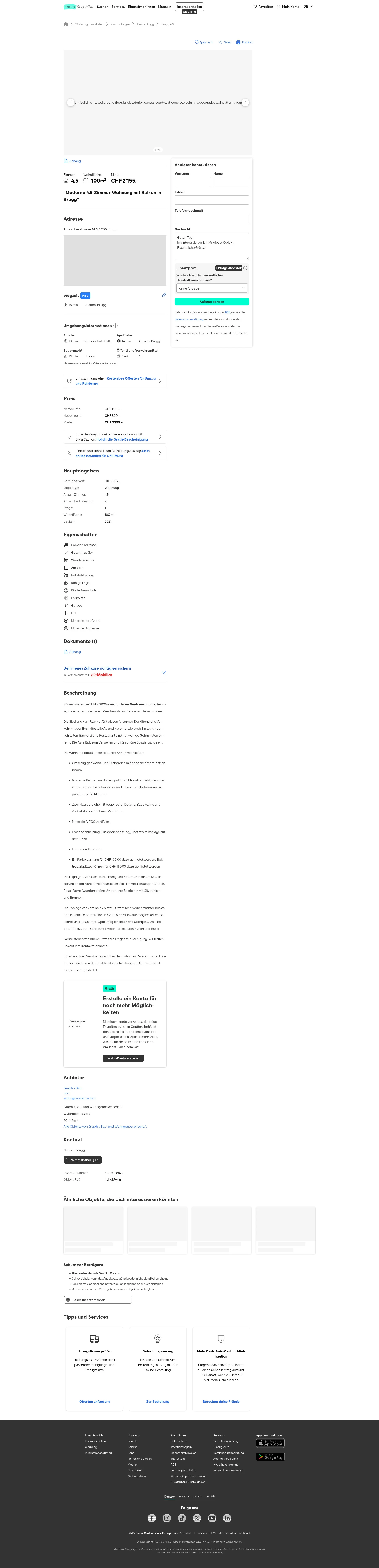 Diese 4.5-Zimmer-Wohnung in Brugg (5200) bietet 100 m² Wohnfläche und gehört zur Siedlung «am Rain». Die Wohnung verbindet eine zentrale Lage mit naturnaher Umgebung.
