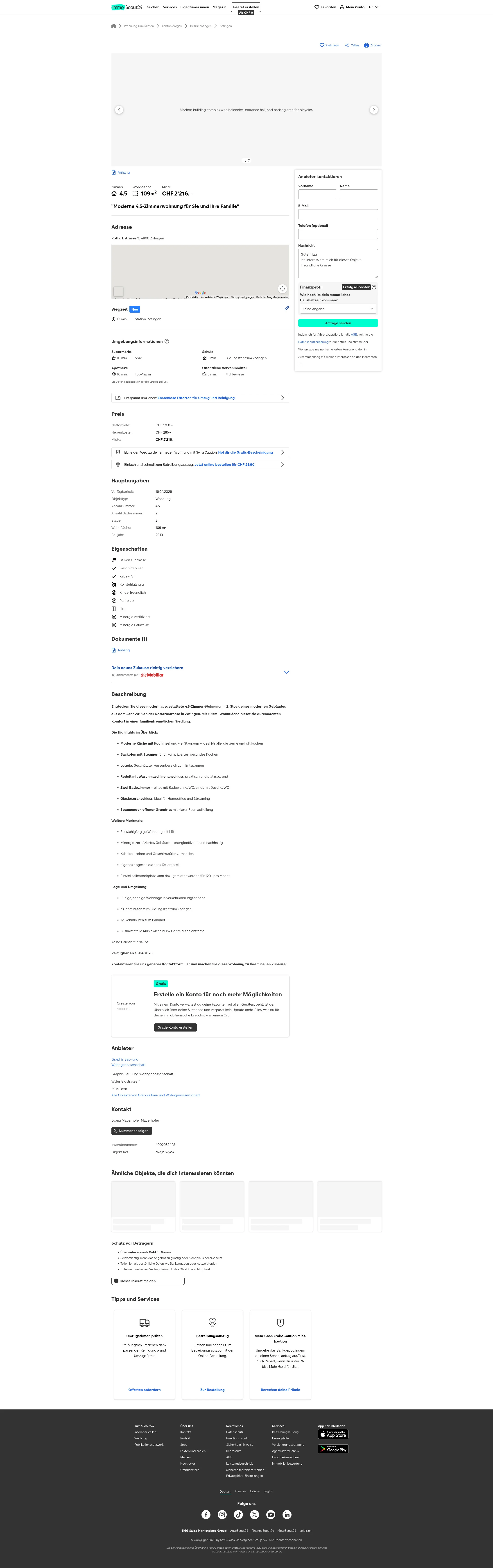 | Miete | CHF 2.216 /Mo |