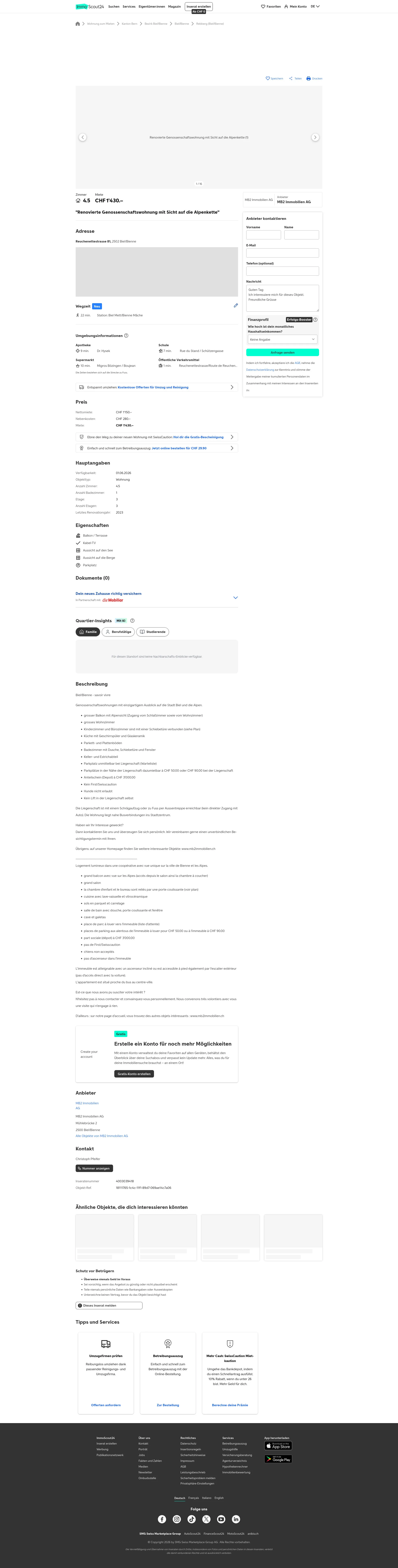 Diese 4.5-Zimmer-Wohnung in Biel (2502) gehört zur Genossenschaft Baugenossenschaft Im vogelsang und bietet einen einzigartigen Blick auf die Stadt Biel und die Alpen.