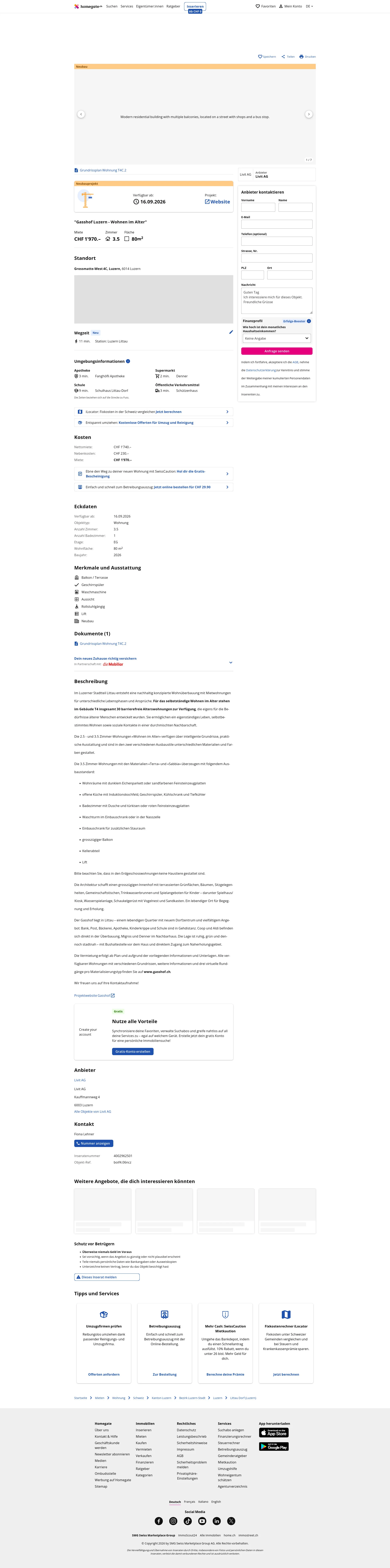 Diese 3.5-Zimmer-Wohnung in Luzern (6014) bietet 80 m² Wohnfläche und ist Teil einer nachhaltig konzipierten Wohnüberbauung im Quartier Littau.