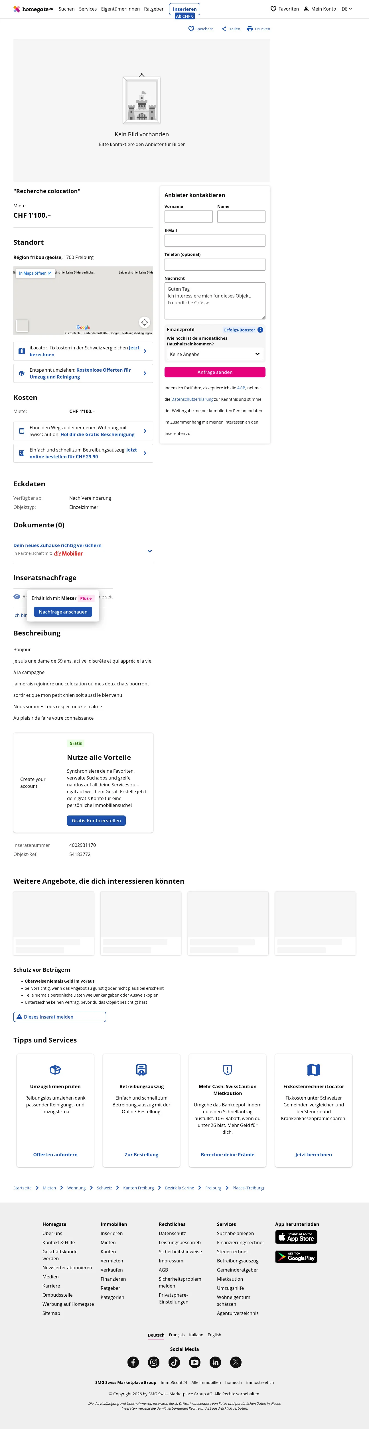 | Miete | CHF 1.100 /Mo |