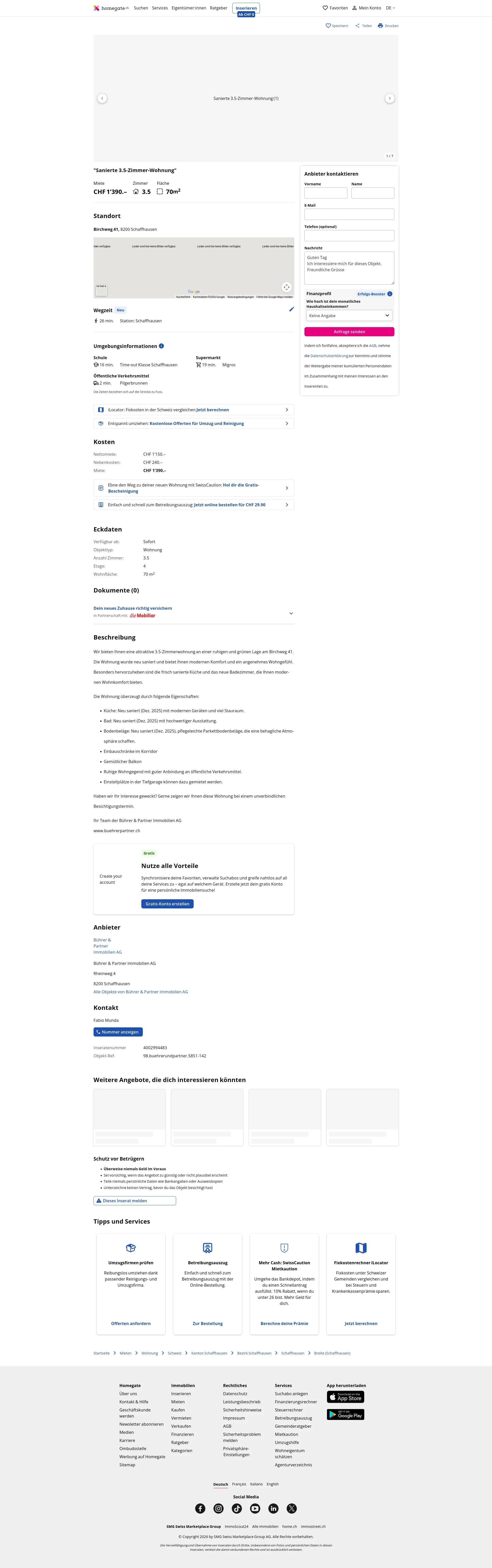 Diese 3.5-Zimmerwohnung an der Birchweg 41, 8200 Schaffhausen bietet 70 m² Wohnfläche und wurde neu saniert.