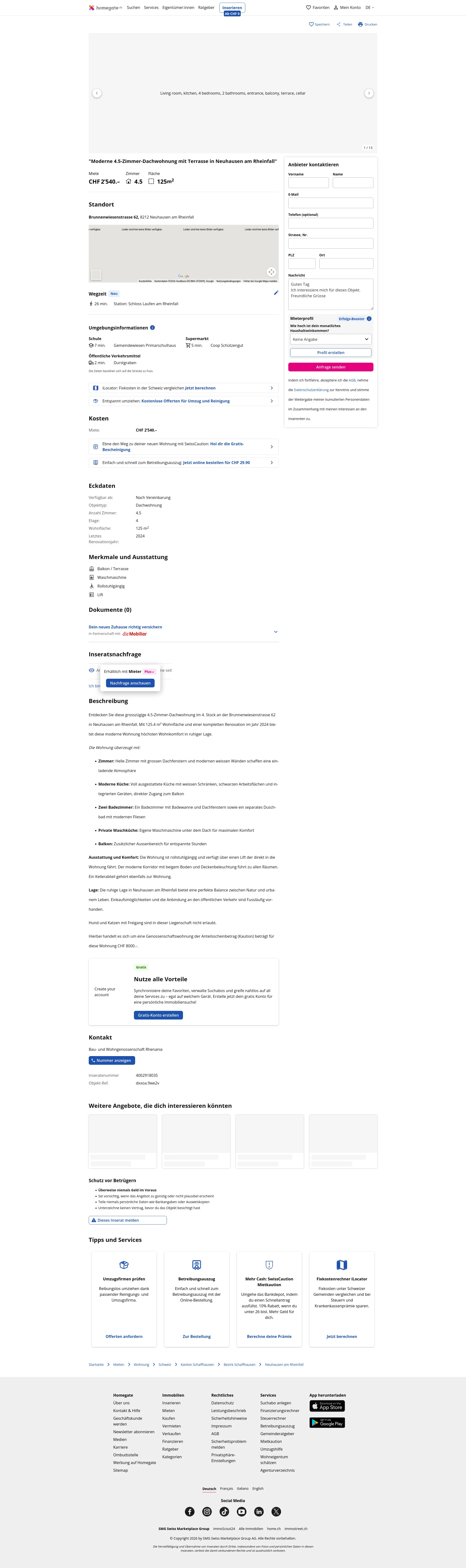 Diese grosszügige 4.5‑Zimmer-Dachwohnung im 4. Stock an der Brunnenwiesenstrasse 62, 8212 Neuhausen am Rheinfall bietet 125.4 m² Wohnfläche und wurde 2024 vollständig renoviert.
