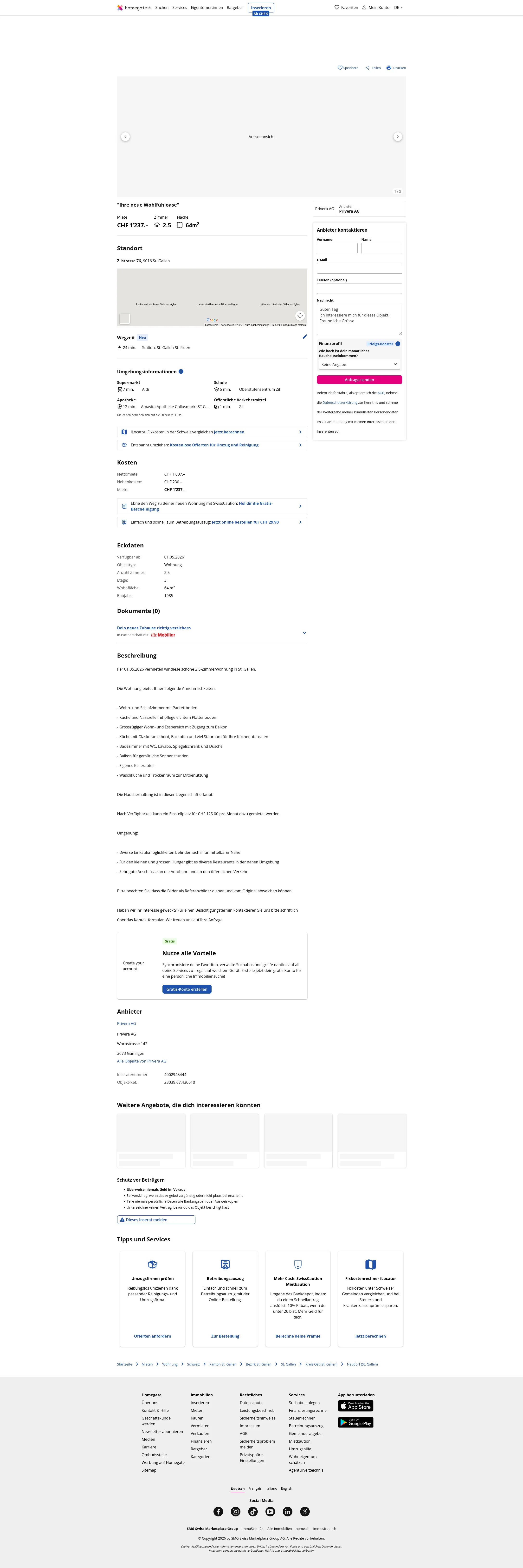 | Miete | CHF 1.237 /Mo |