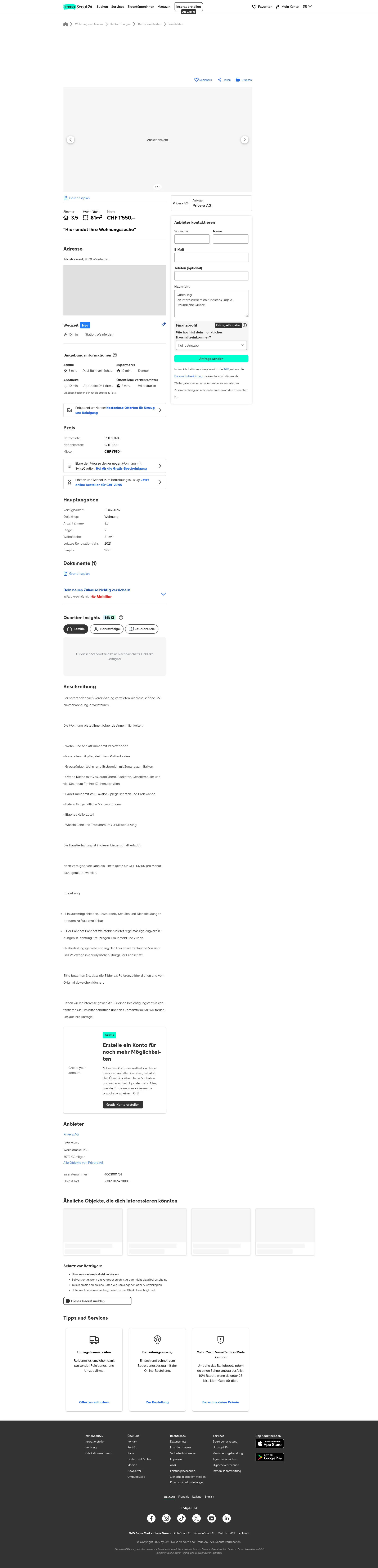 Diese 3.5‑Zimmerwohnung in Weinfelden (8570) bietet 81 m² Wohnfläche und gehört zur Genossenschaft Logis Suisse AG.