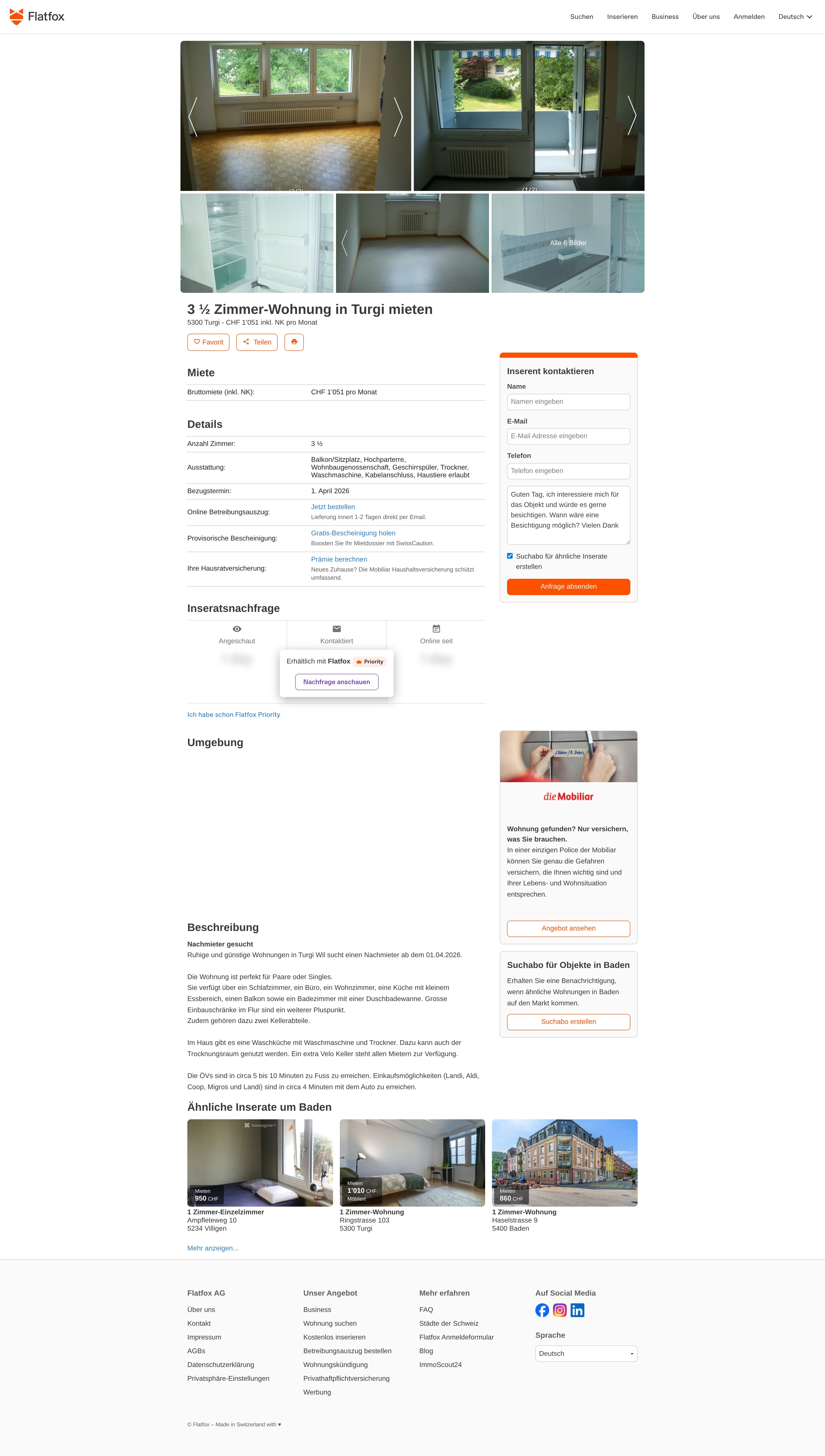 Diese ruhige und günstige 3.5-Zimmer-Wohnung in Turgi (5300) ist ab dem 01.04.2026 verfügbar.
