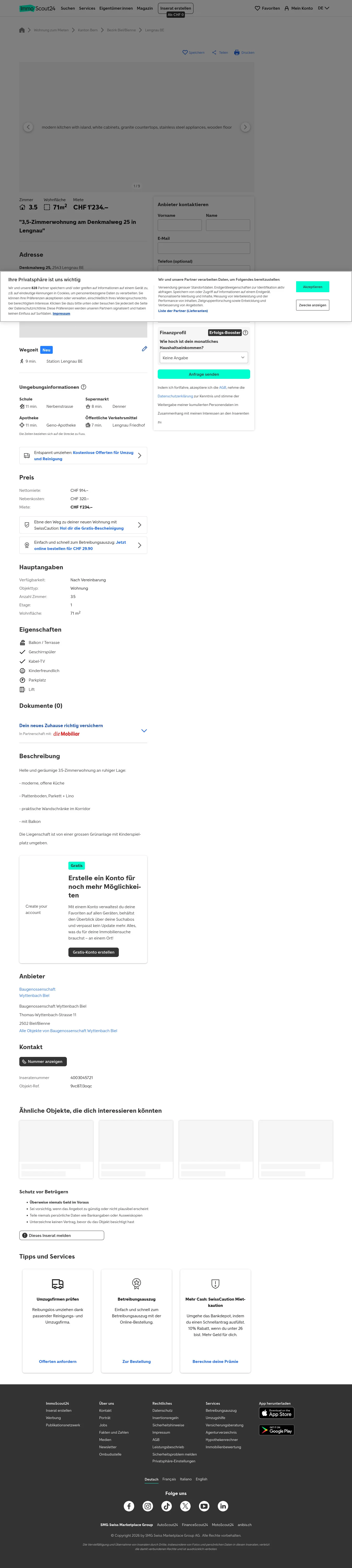 Diese 3.5-Zimmer-Wohnung in Lengnau (2543) bietet 71 m² Wohnfläche.